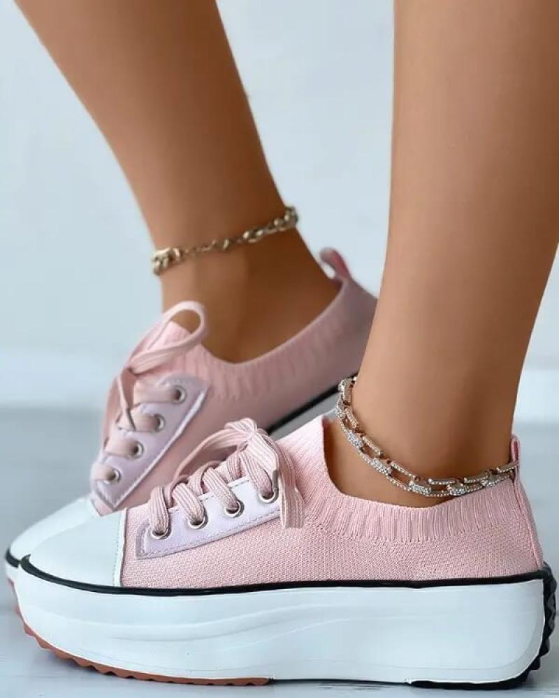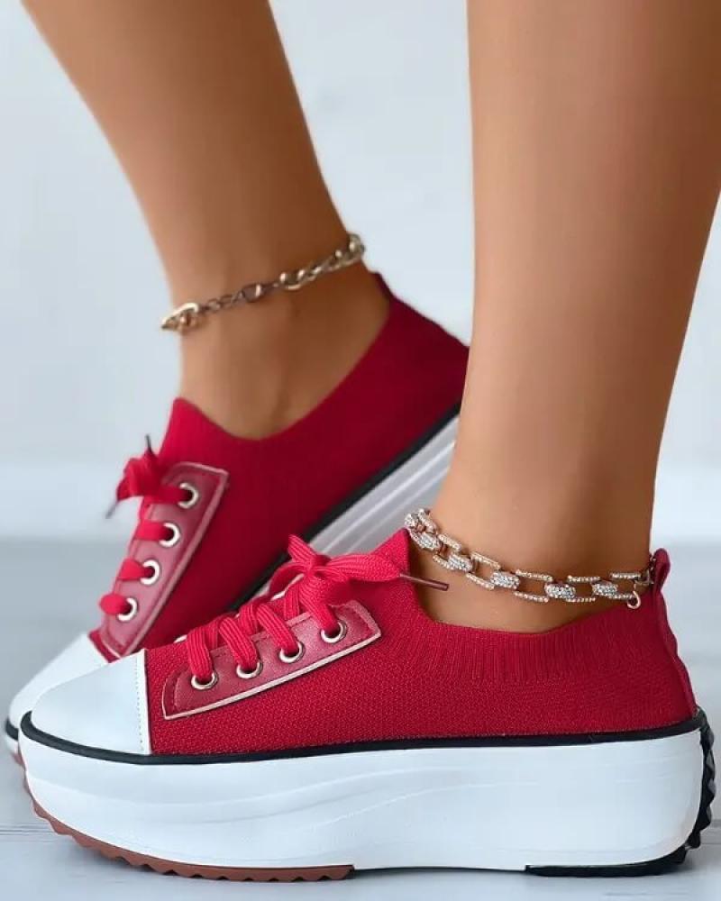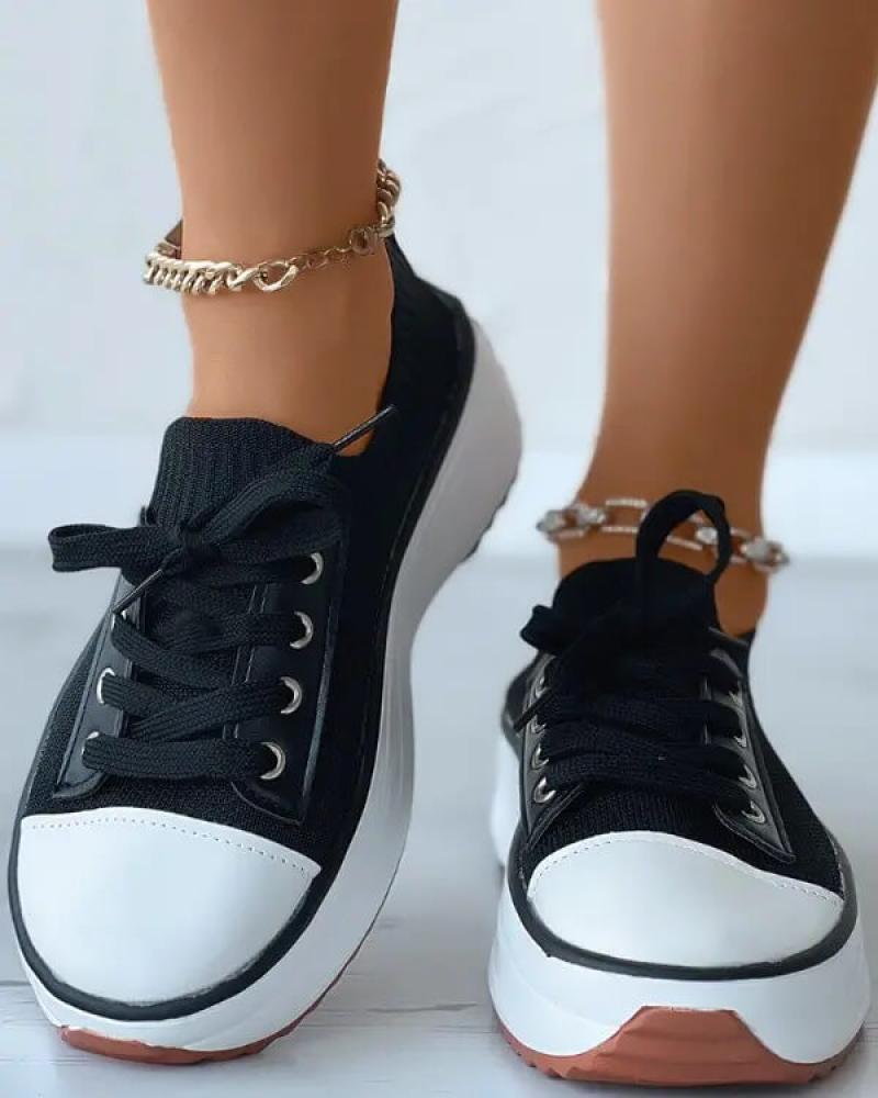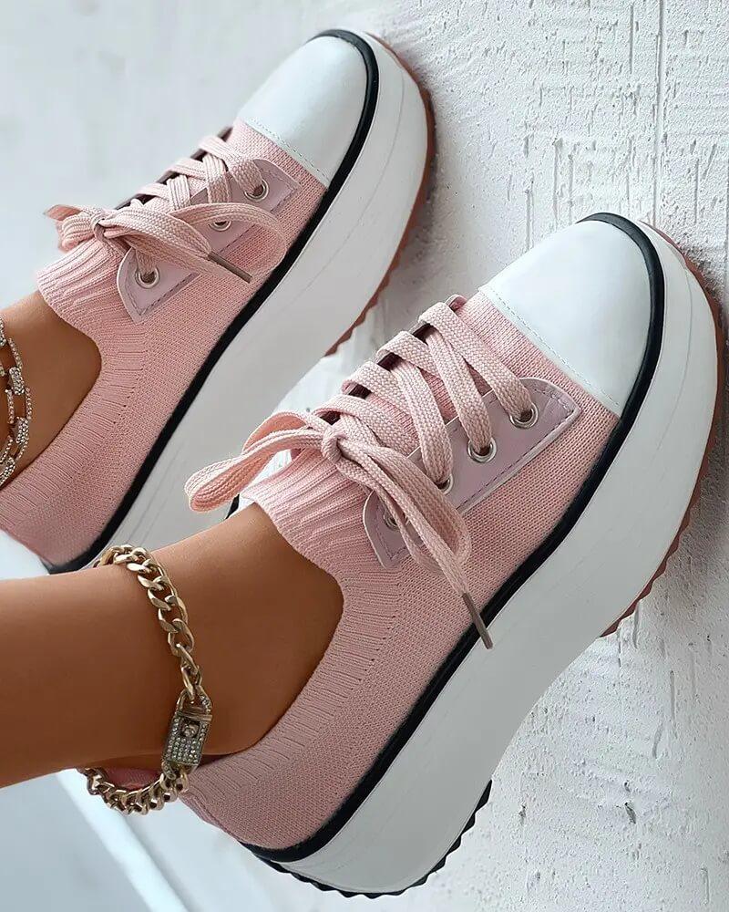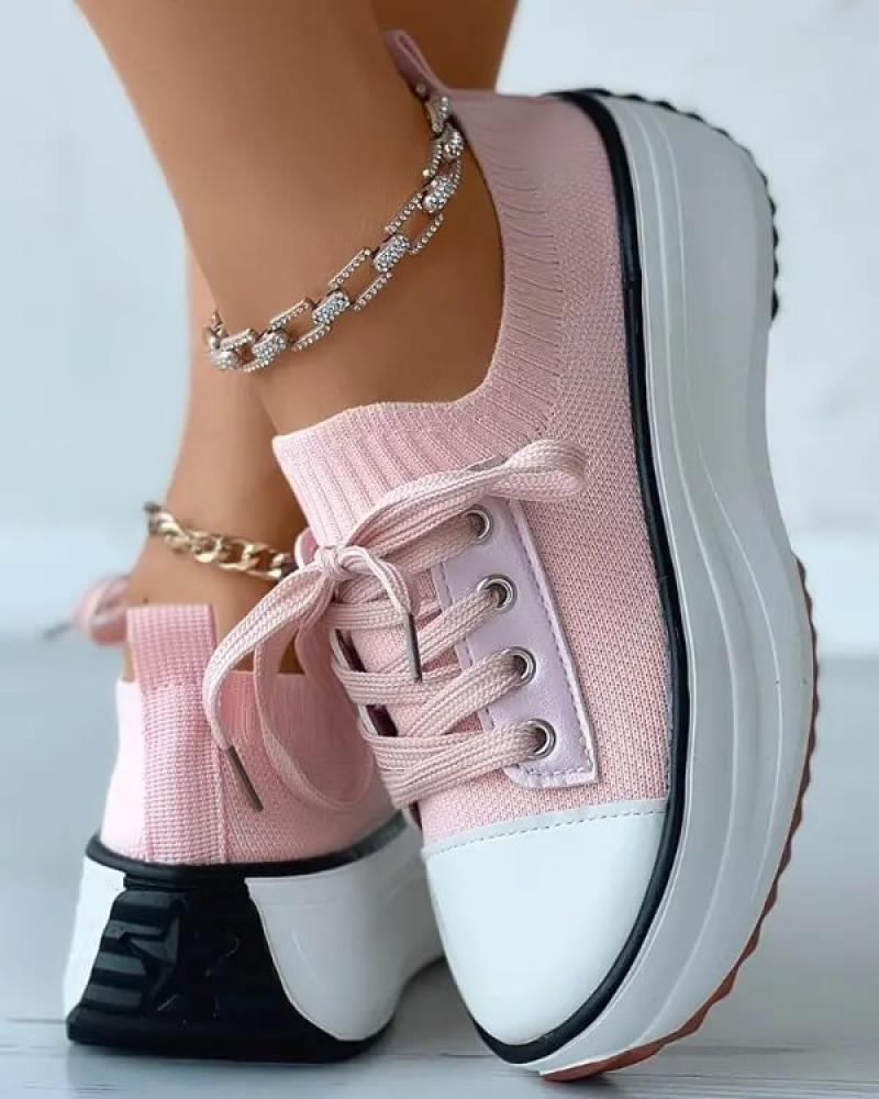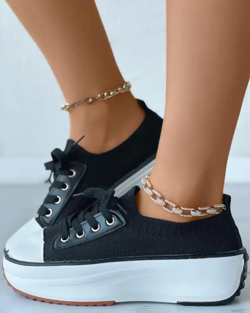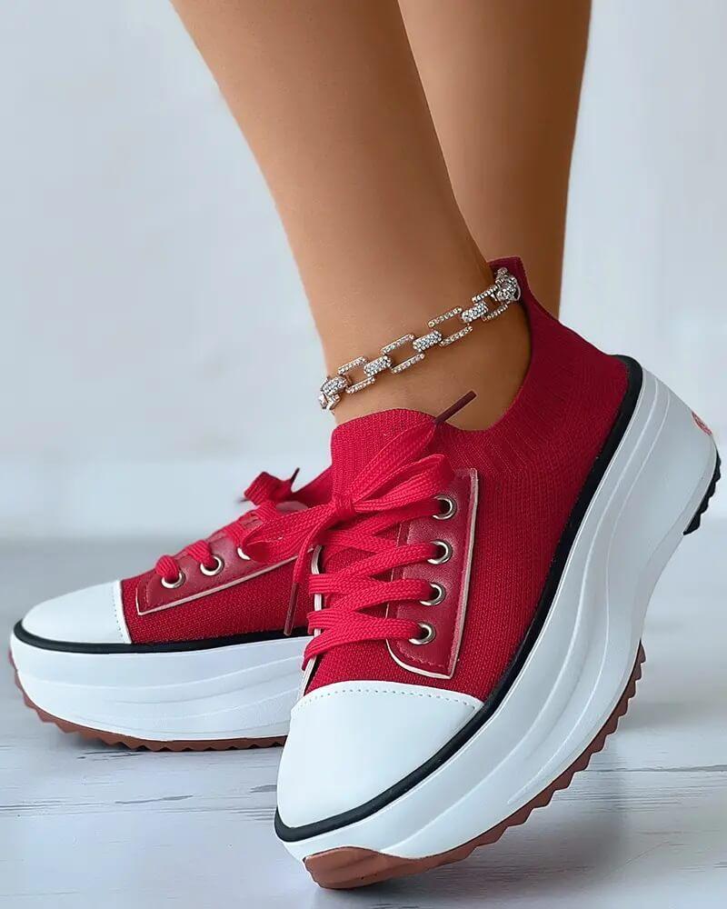 • Women's Fashion Outdoor Solid Color Round Toe Platform Lace-up Sneakers