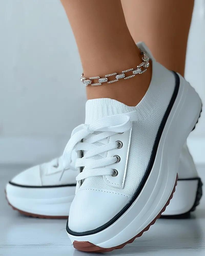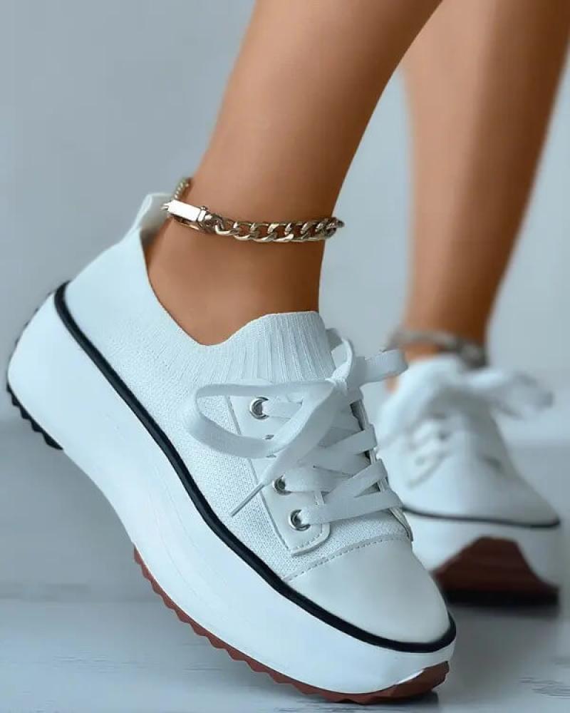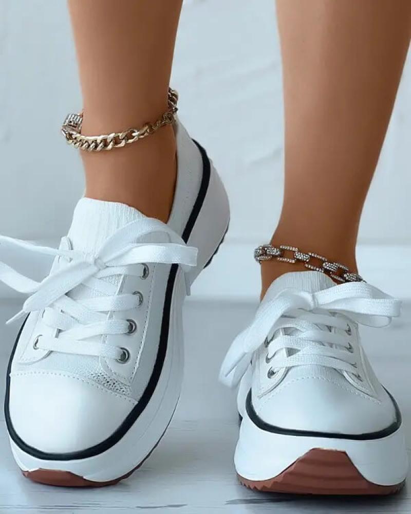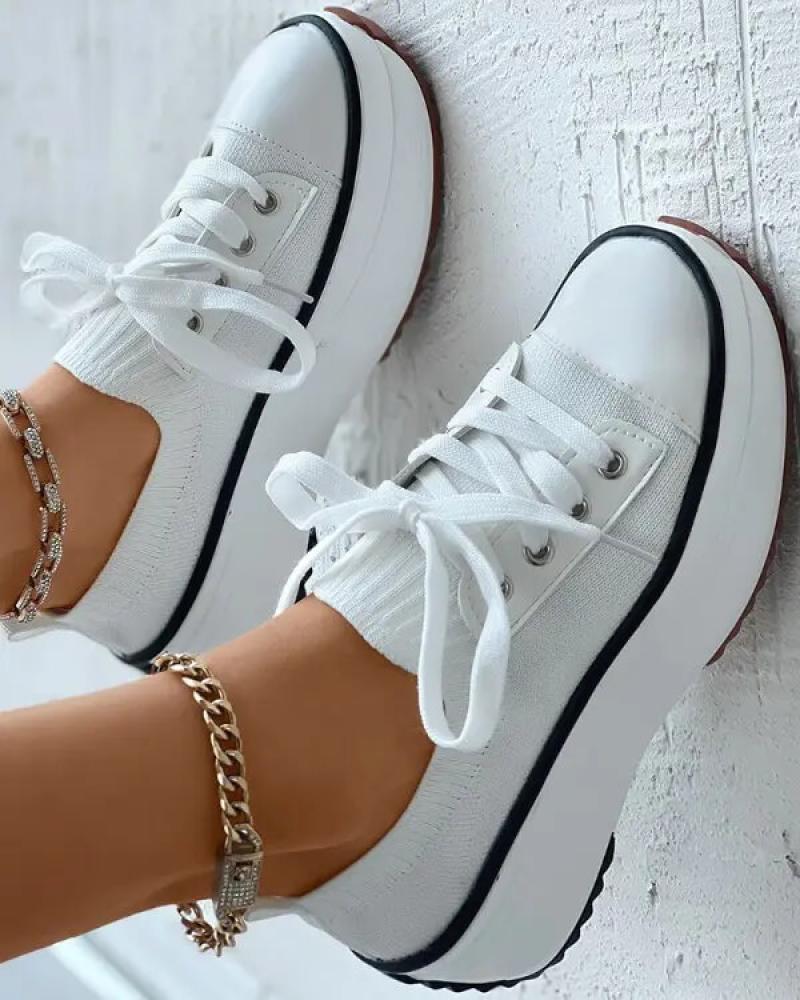 Women's Fashion Outdoor Solid Color Round Toe Platform Lace-up Sneakers