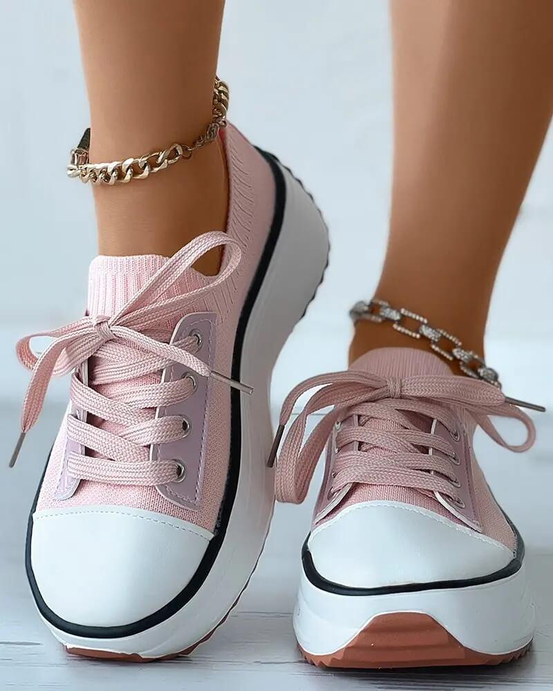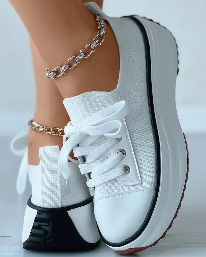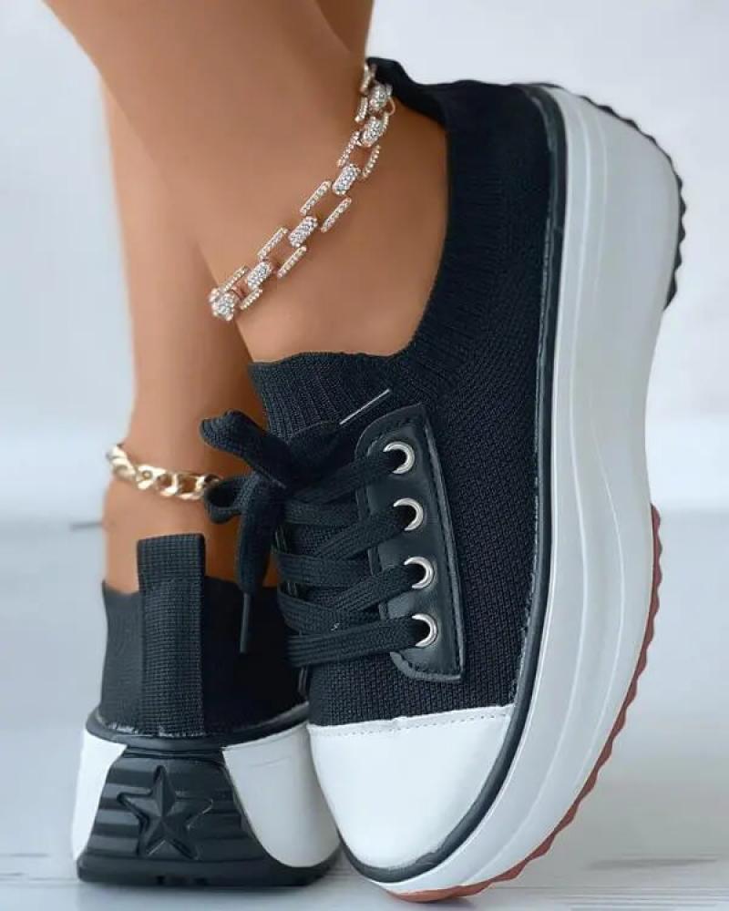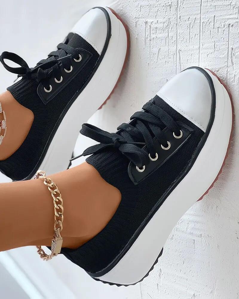 Women's Fashion Outdoor Solid Color Round Toe Platform Lace-up Sneakers